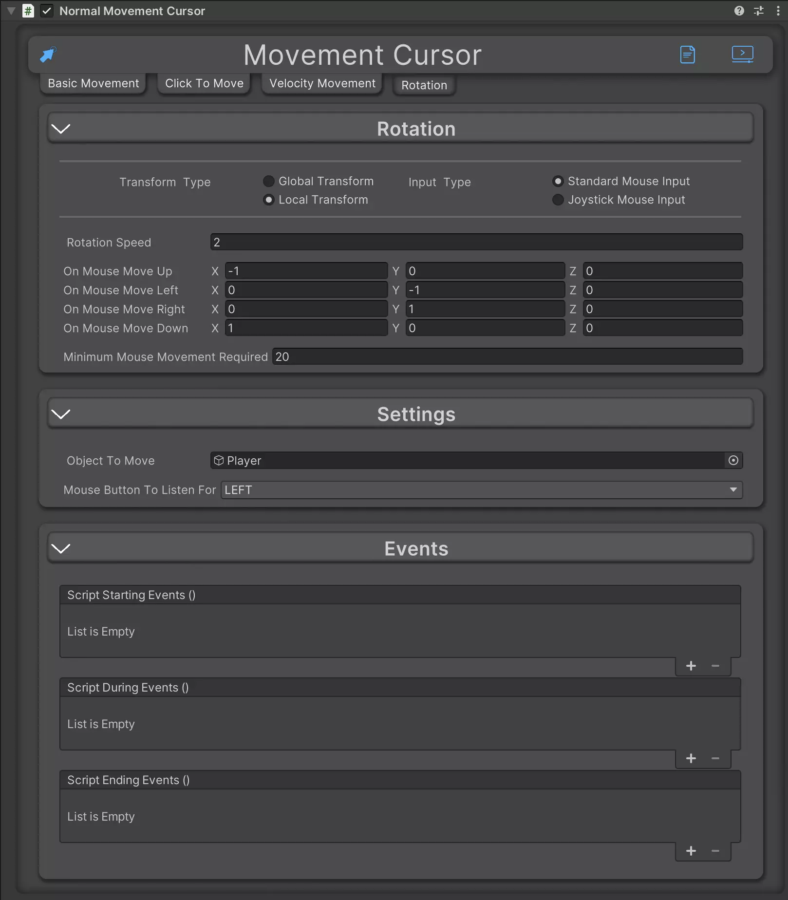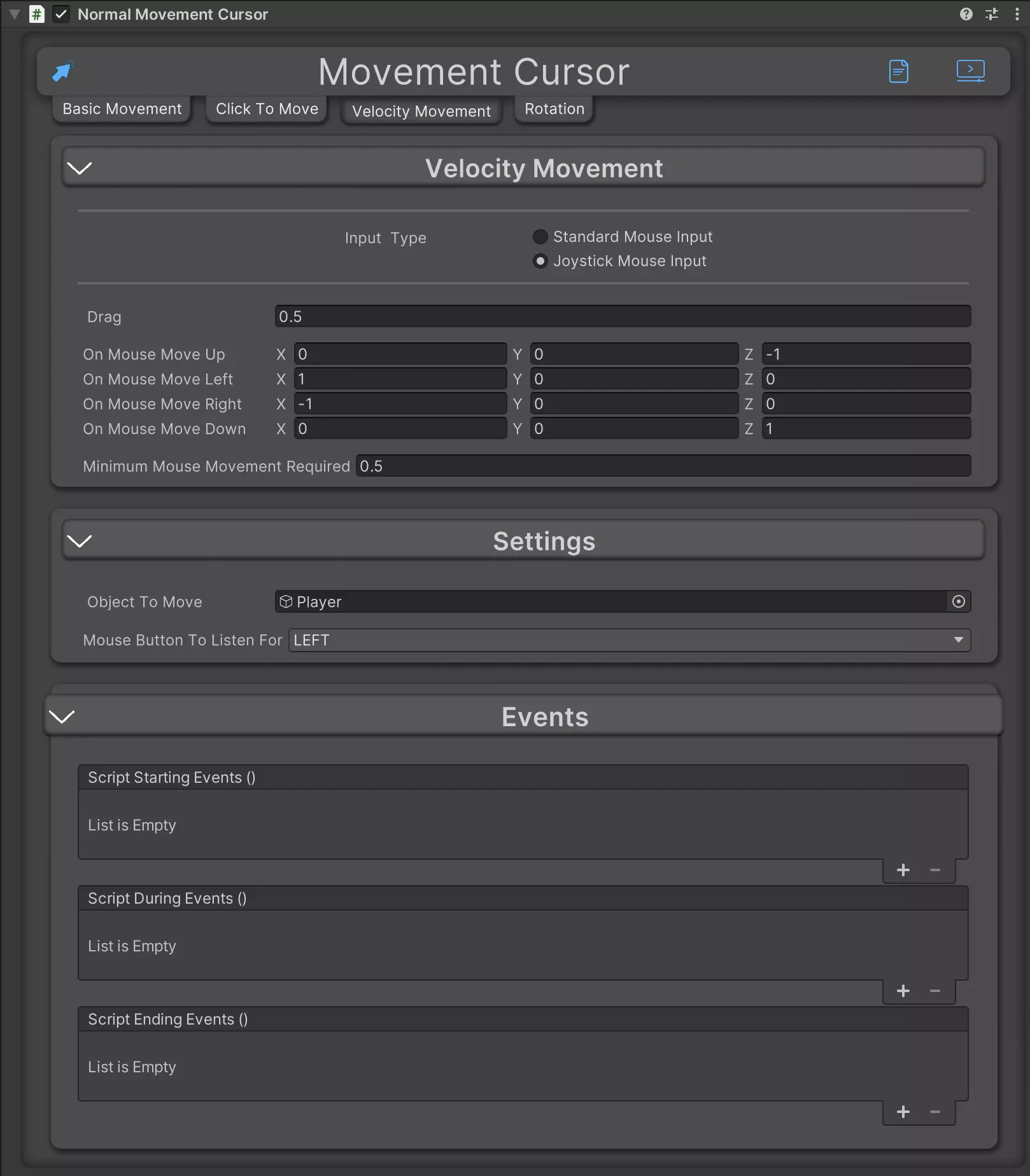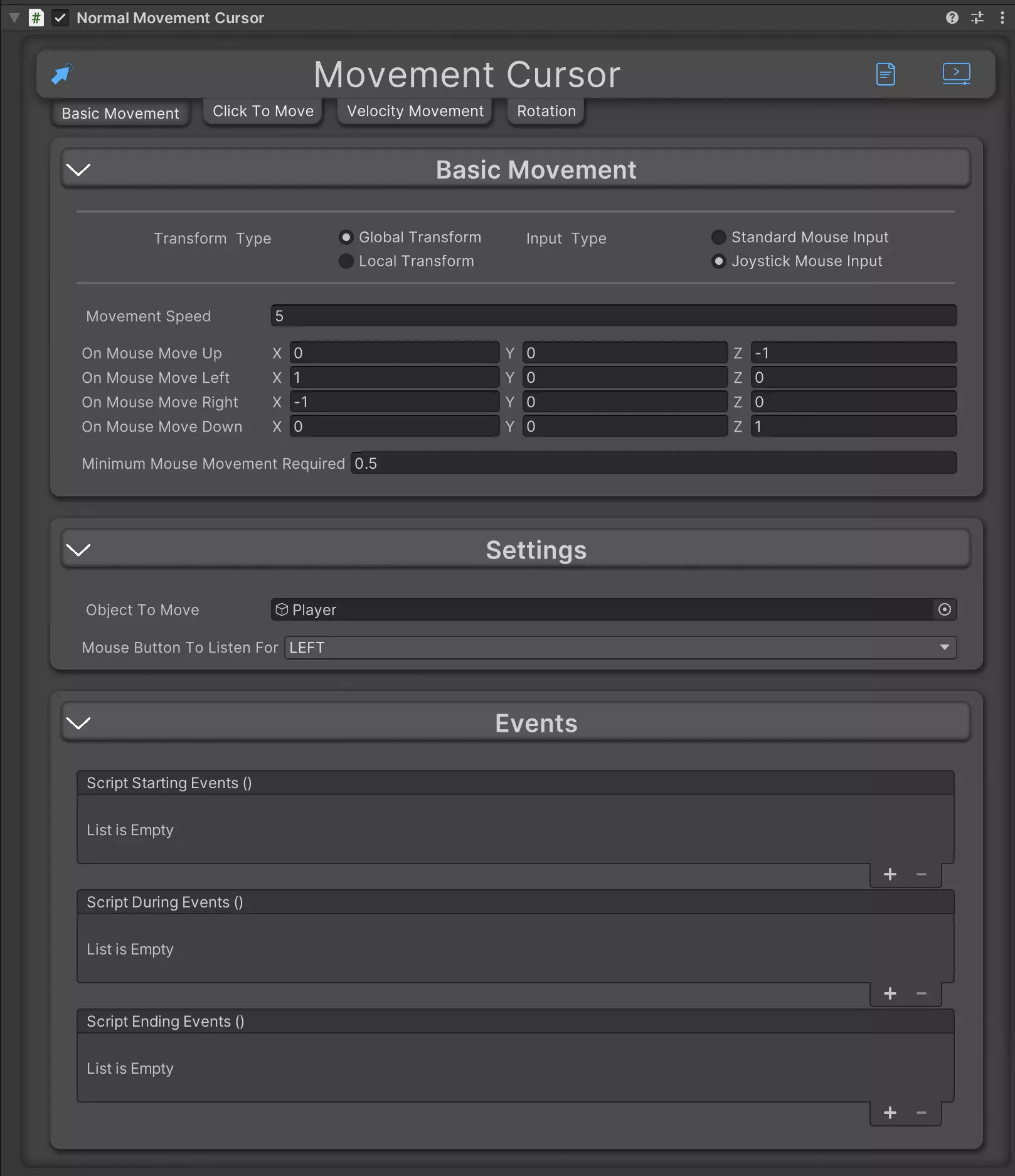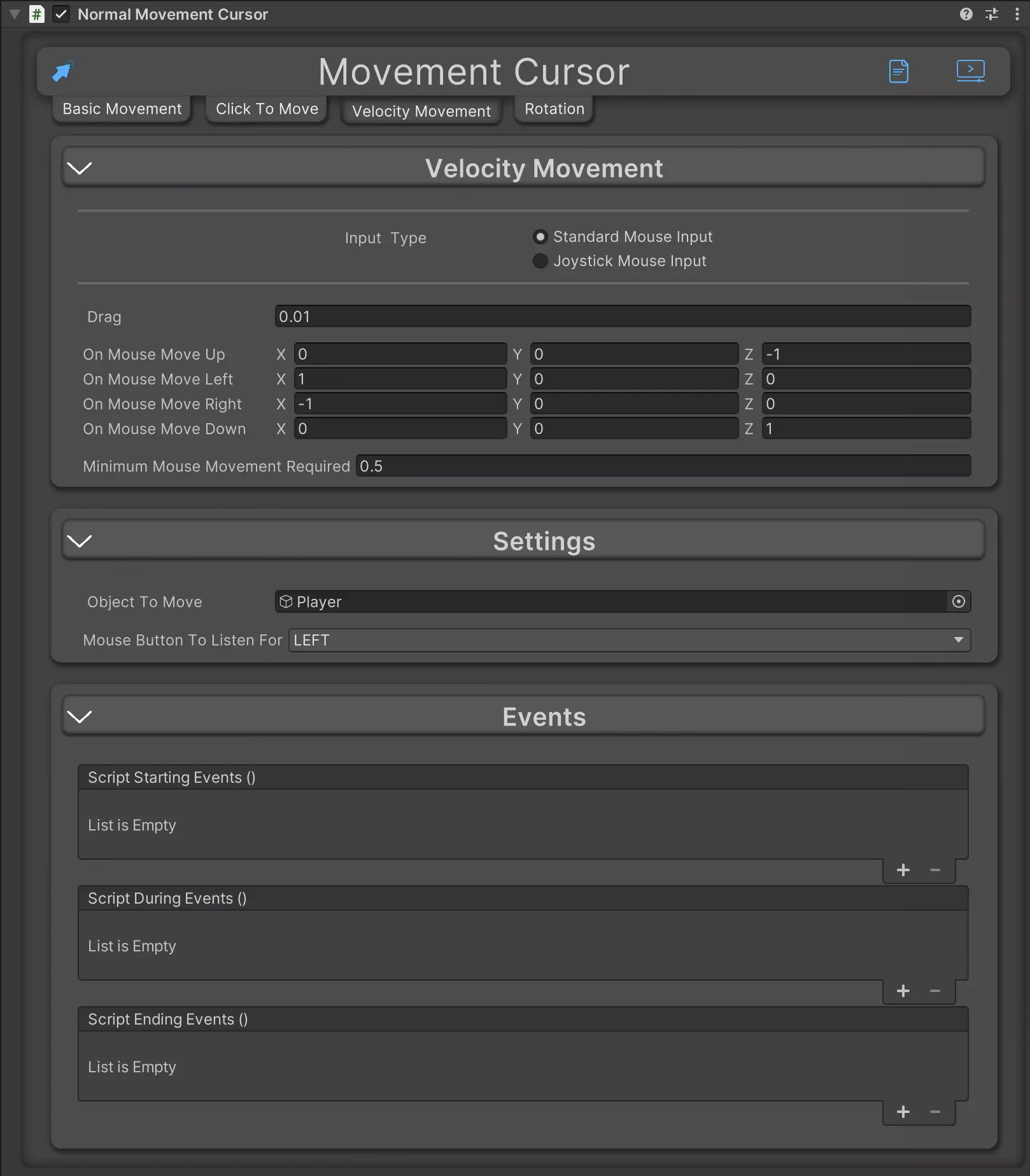 Easily Add Cursor / Mouse base movement to your game with 8 in 1 Cursor Movement. From Teleportation, Physics based, direct movement and even rotation.