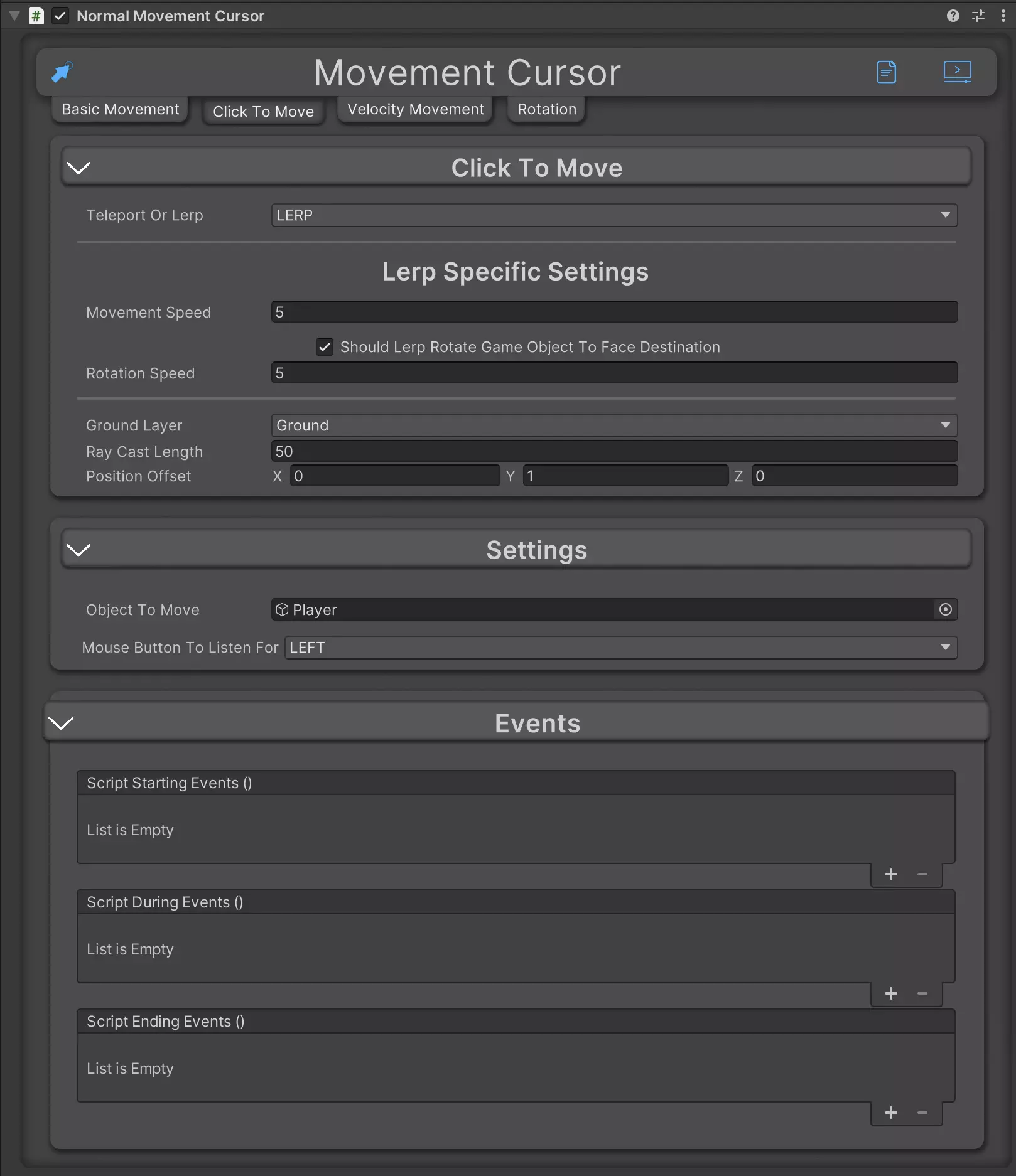 - Easy integration with other scripts with the Unity Event system